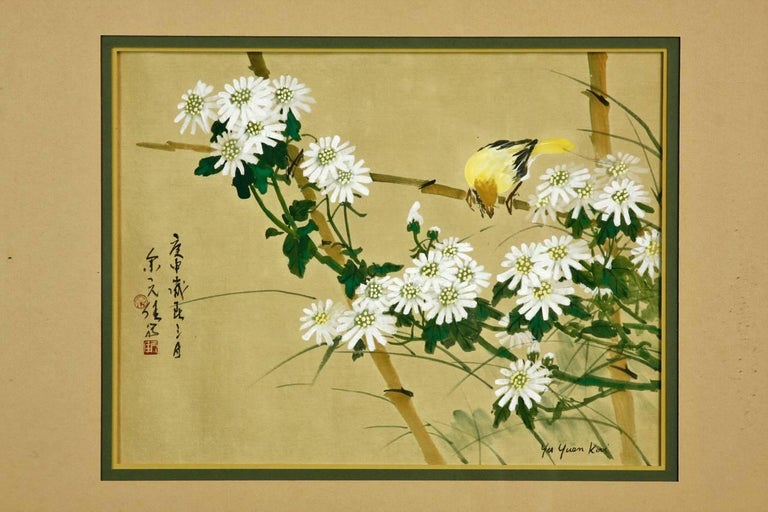 Chinese Floral Painting With Bird Yu Yuen Kai At 1stdibs Chinese Floral Paintings